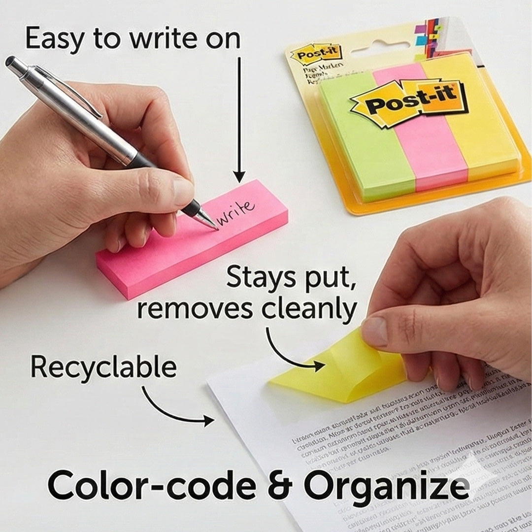 - Post-it page markers provide a simple and effective way to organize, highlight, and reference information quickly.