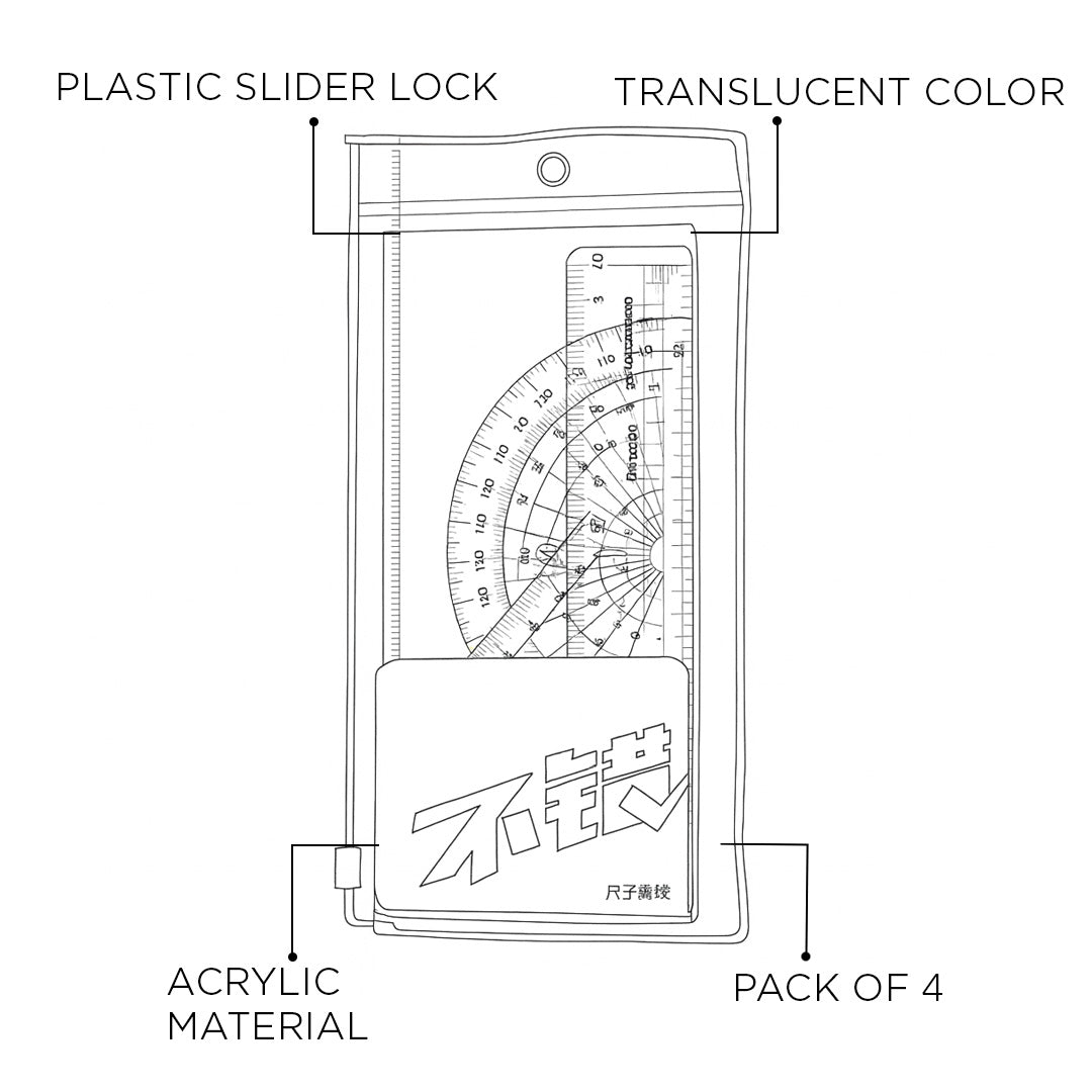 - Come with 4 pieces geometry tool set which contains a ruler; a protractor; 2 pieces set squares.