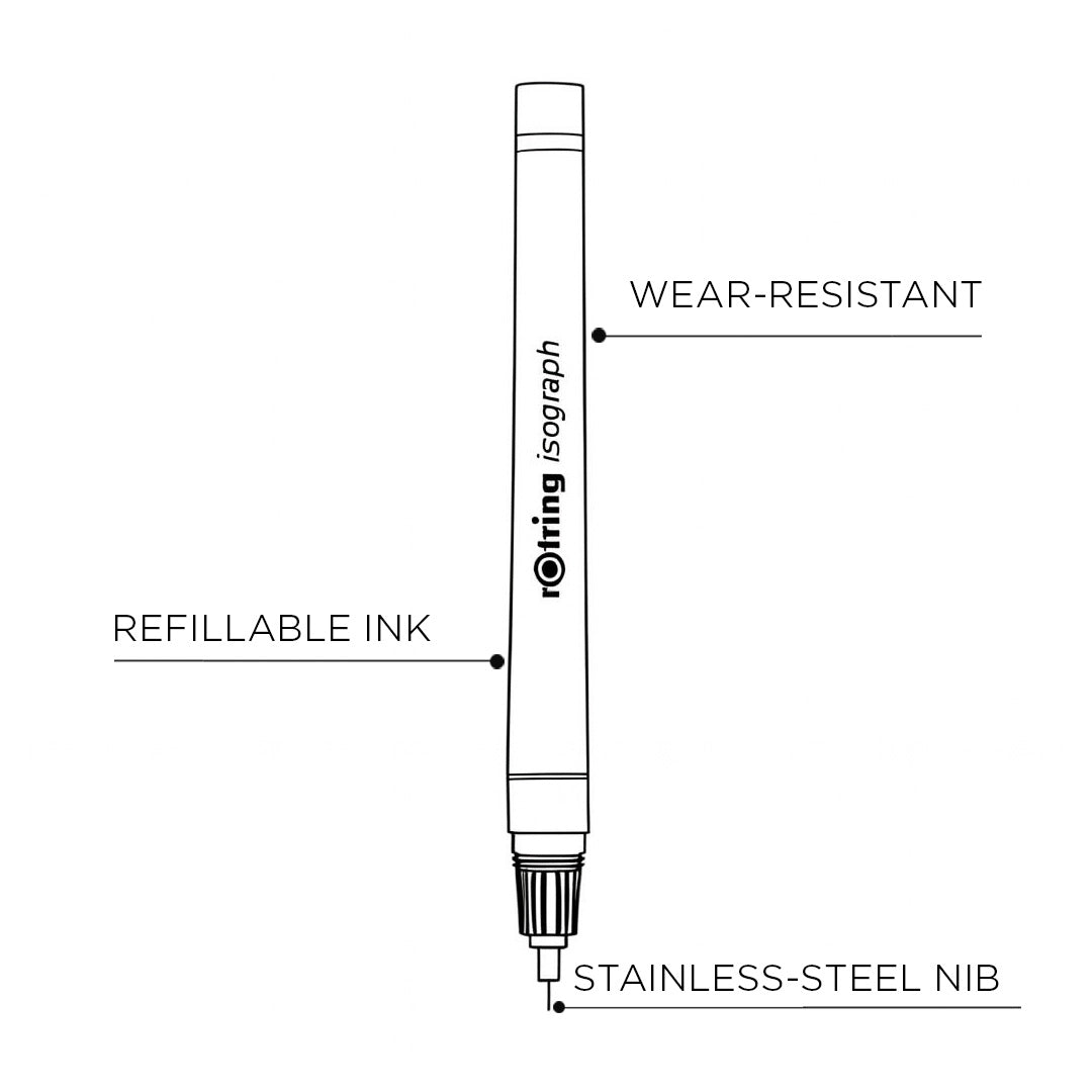 - With color-coded barrels for instant line-width identification and the iconic rotring red ring, Isograph pens combine engineering excellence with functional design ideal for drafting, technical illustration, and precise artwork on tracing paper, vellum, and lineboard.