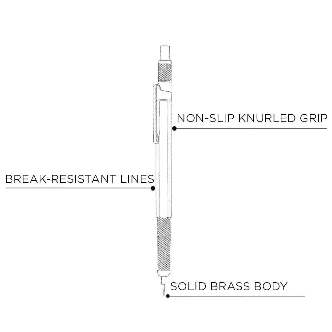 - Built with a solid brass body, it delivers exceptional durability and a perfectly balanced feel. The signature non-slip knurled grip ensures steady control, allowing you to sketch, write, or draft with absolute precision.