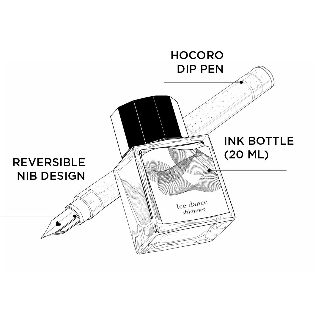- The set includes specially formulated glitter ink designed exclusively for dip pen use.