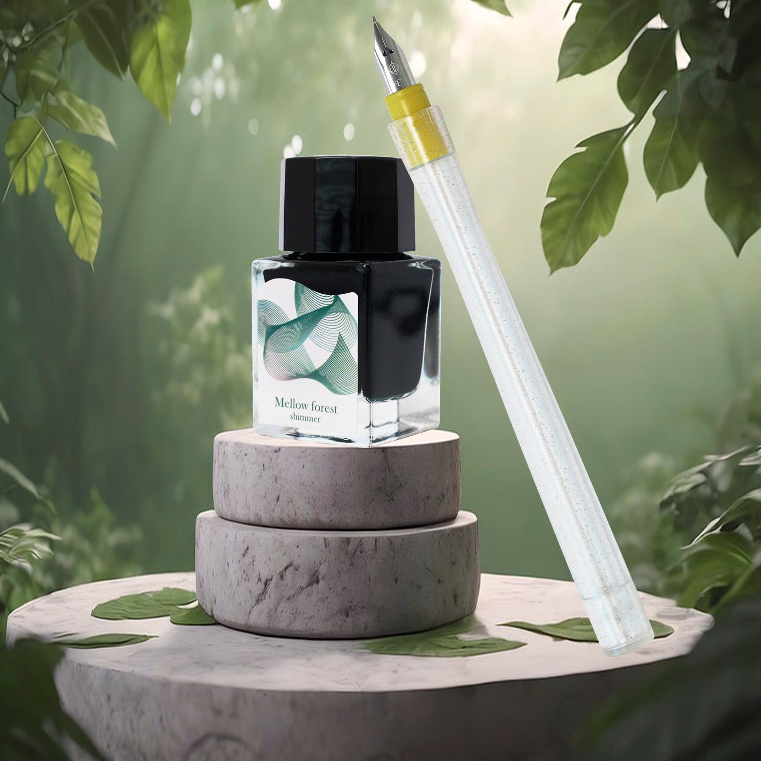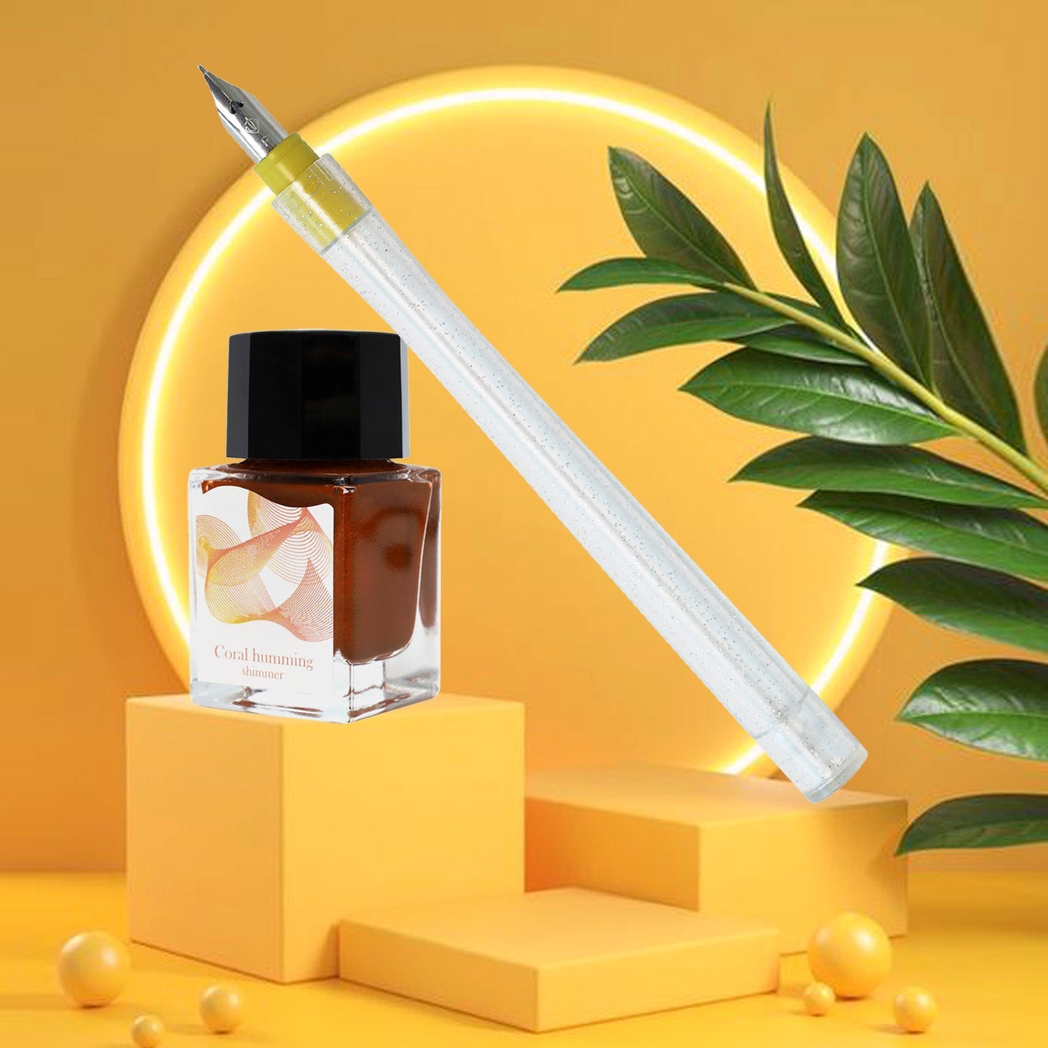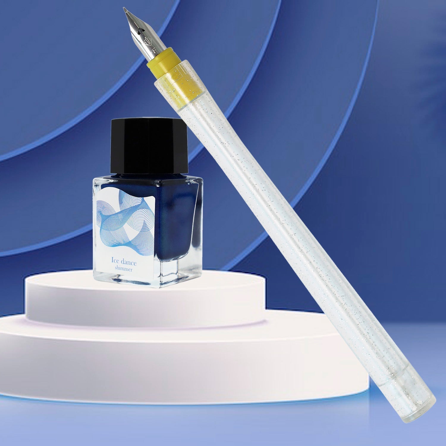 - The ink included with this set is for use with dip pens only, the glitter may cause clogs in fountain pens, shake the bottle gently before use to ensure that the metallic particles are evenly dispersed in the ink when you fill your pen.