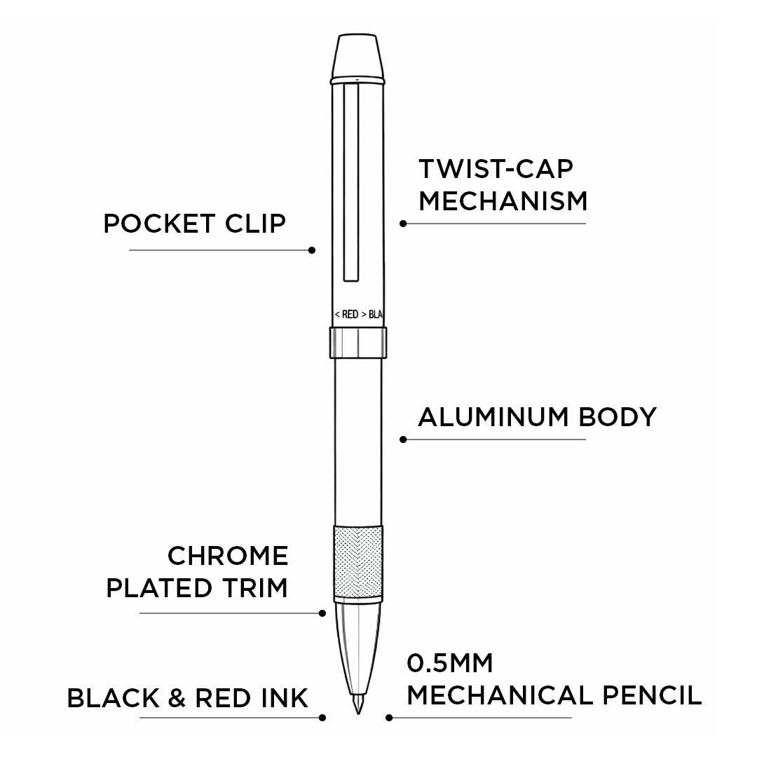 - This smart multi-functional pen combines three essential writing tools in one compact body.