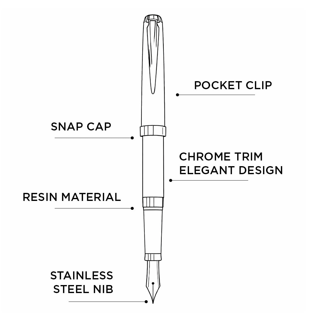 - The pen features a snap-cap closure that ensures secure protection of the nib while allowing quick and convenient access.