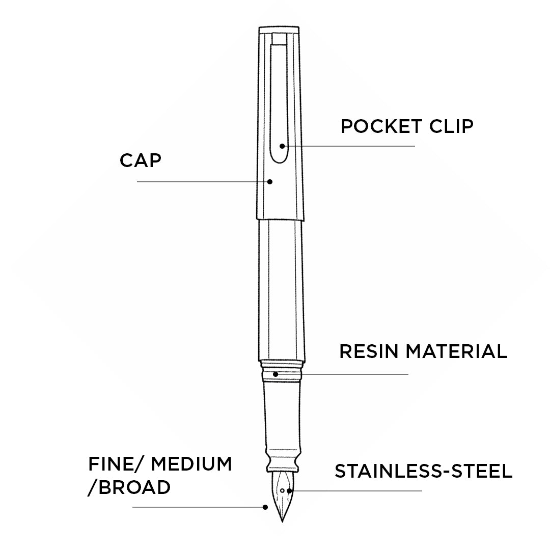 - It is equipped with a stainless steel nib available in Fine, Medium, and Broad sizes, allowing you to choose your preferred writing style from precise and detailed lines to smooth and bold strokes.