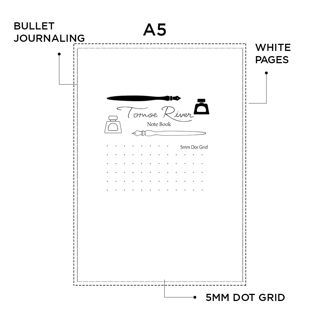 - The 5mm white dot grid layout offers subtle guidance for writing, drawing, or bullet journaling while maintaining a clean, minimalist look.