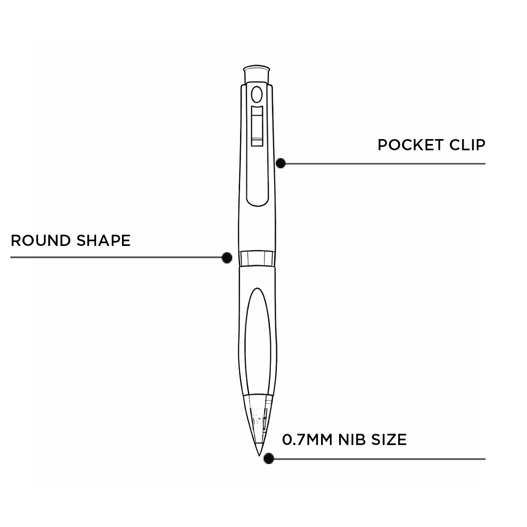 - Designed with both form and function in mind, the pens have a thick shaft and comfortable grip that fits naturally in your hand, while the large clip makes it easy to attach the pen to notebooks, folders, or even thicker objects.