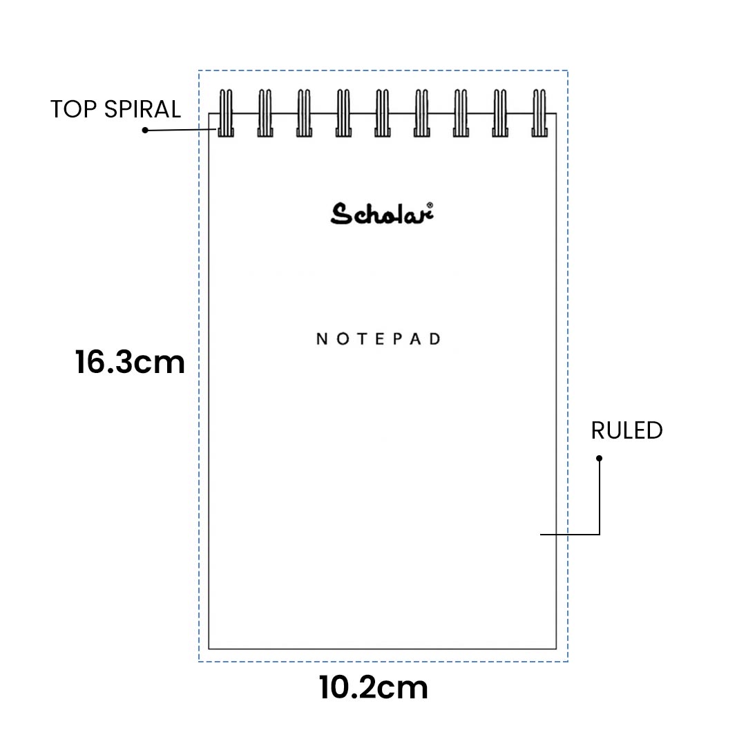 - The Scholar Top Bound Spiral Notepad is a compact and versatile writing pad designed for quick notes and everyday use.