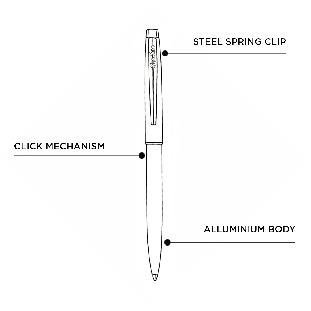 - Crafted with a high-quality aluminium body, the pen is both lightweight and durable, offering a premium metallic feel while remaining comfortable for long writing sessions.