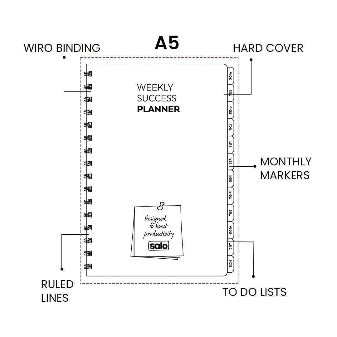 - Solo A5 Weekly Success Planner is a thoughtfully designed organizer that helps you plan, track, and achieve your weekly goals with ease.