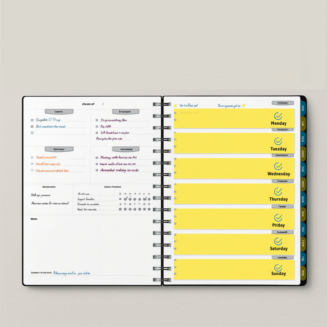 - Crafted with high-quality sheets for smooth writing, and a durable cover for daily use, it is perfect for students, professionals, and anyone looking to stay organized and motivated throughout the week.