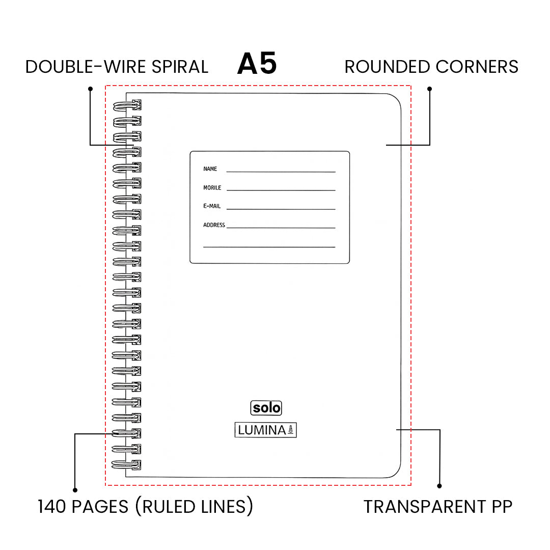 - Take notes in style and stay organized with the solo spiral A5 ruled notebook.