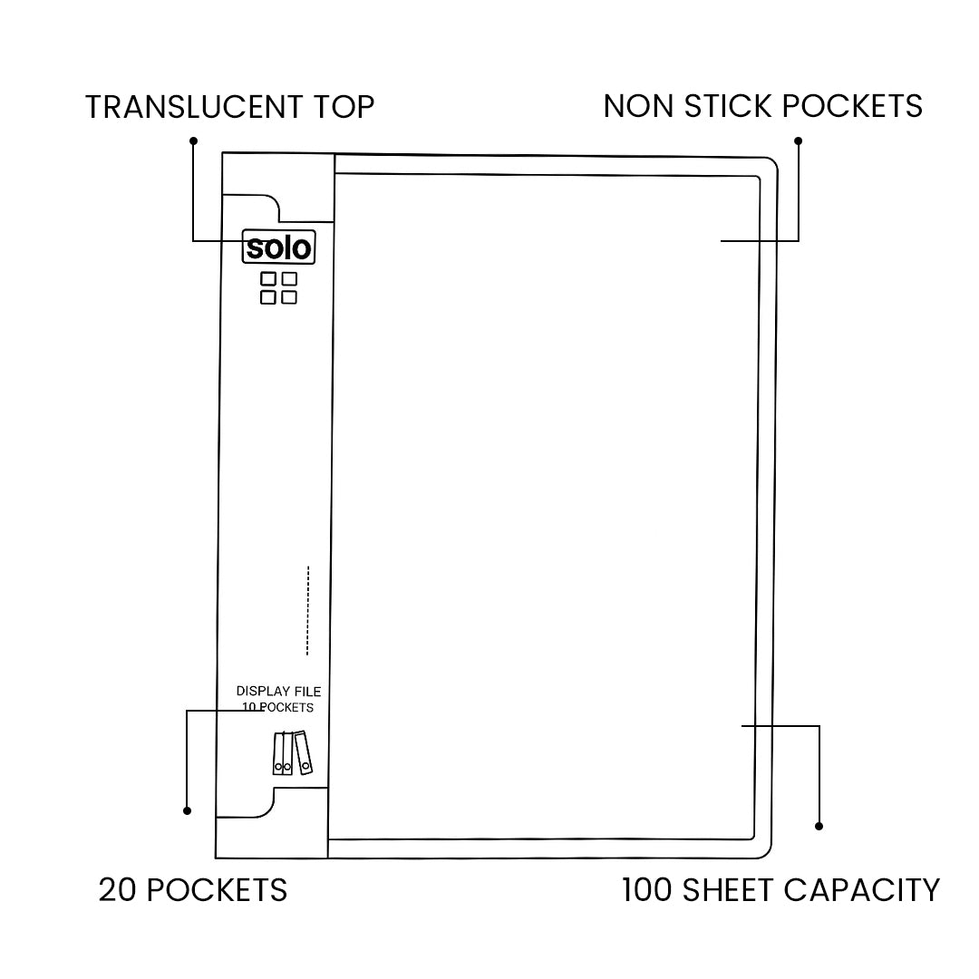 - Solo display files 20 pockets A4 are designed to keep your important A4 documents neatly organized and easily accessible.