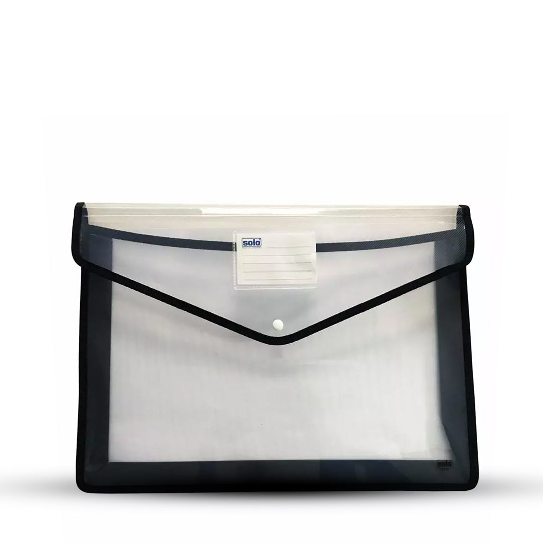 - Solo Flexi Button Bag – Foolscap Size is a versatile and durable document holder designed to keep your papers, files, and important documents organized and protected.