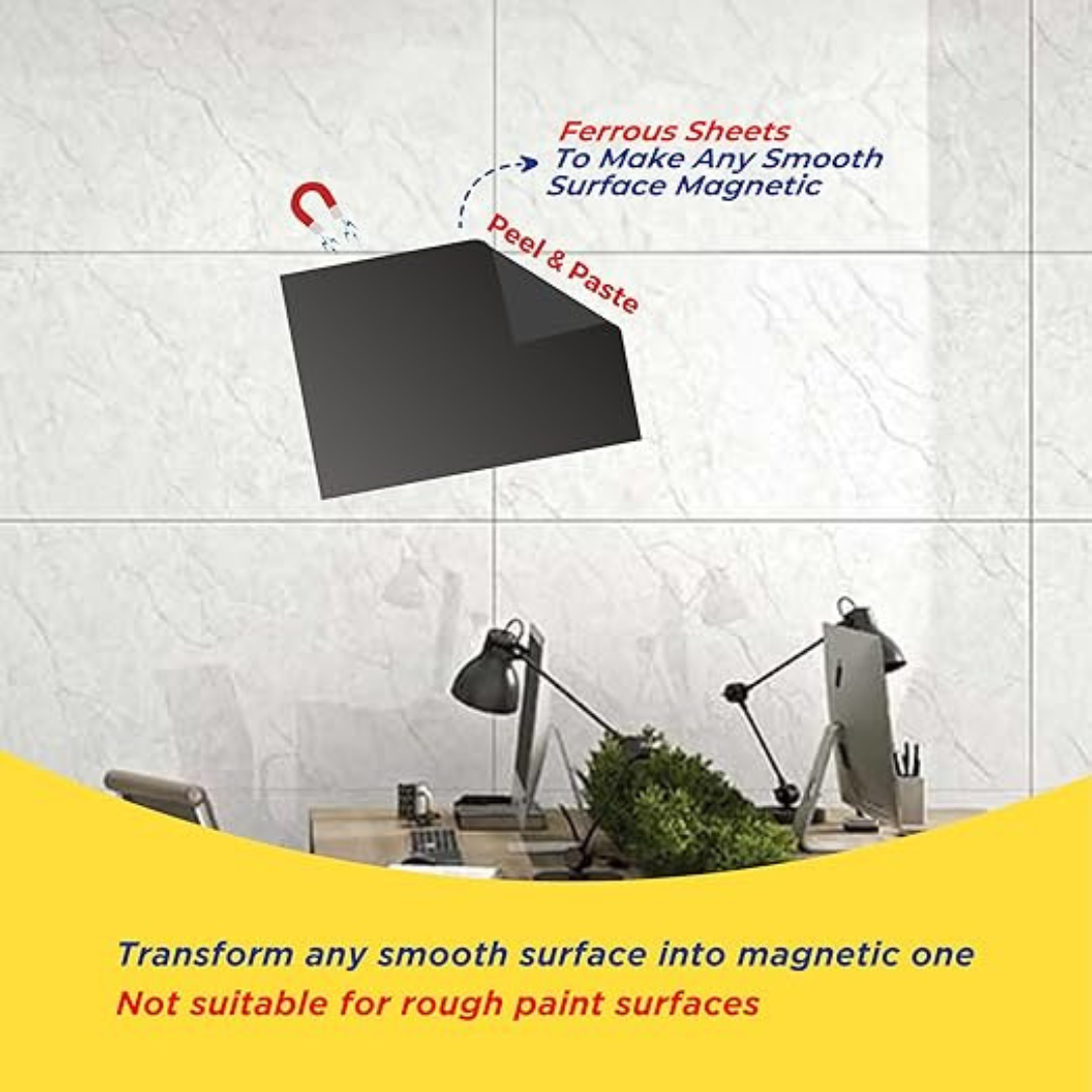 - MAKE ANY SMOOTH SURFACE MAGNETIC WITH PEEL & STICK FERROUS SHEETS: Our just peel & stick ferrous sheets for smooth surface allow you to use this board on any smooth surface without any damage to the wall. Experience long-lasting convenience with our magnetic whiteboard that allowing you to stick, write, erase, and repeat for many years. The magnetic daily planner whiteboard sticks to all magnetic surface items and is not suitable for glass boards and rough paint surfaces.