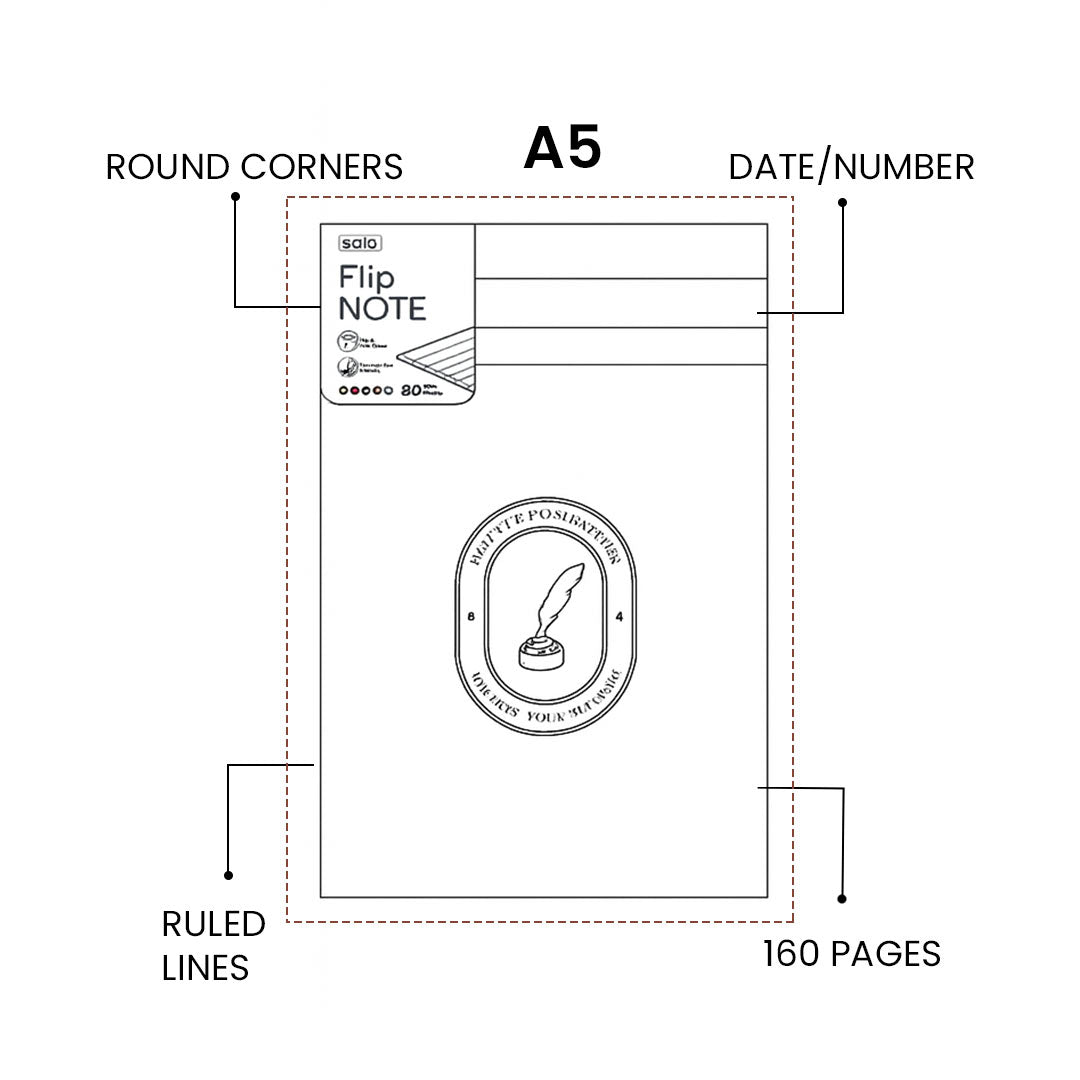 - Solo flip note A5 notepad is a compact and handy writing companion designed for everyday use.