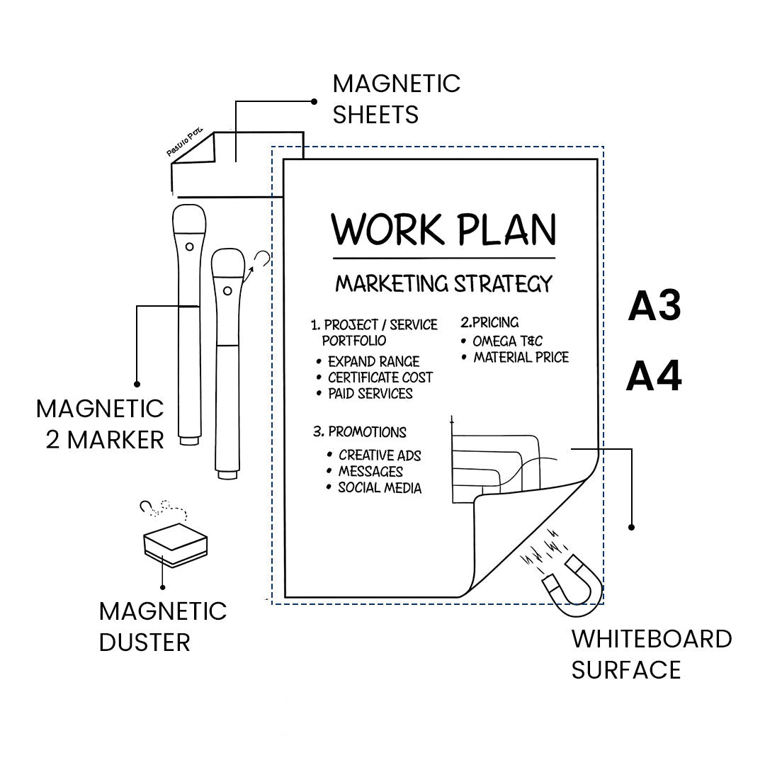 - Its magnetic backing enables you to pin notes, reminders, or charts using magnets, making it both practical and multifunctional.