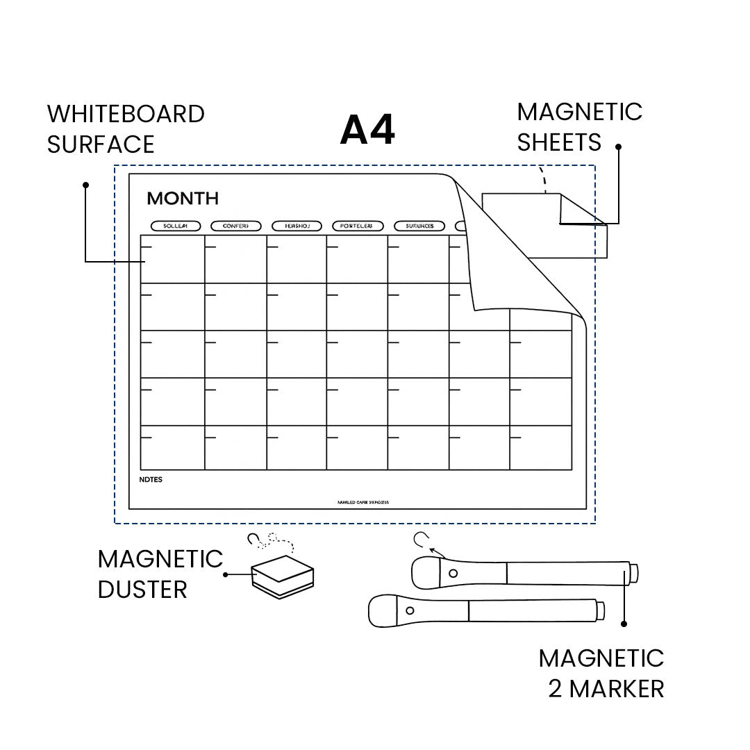 Solo Magnetic Whiteboard A4 Monthly Planner