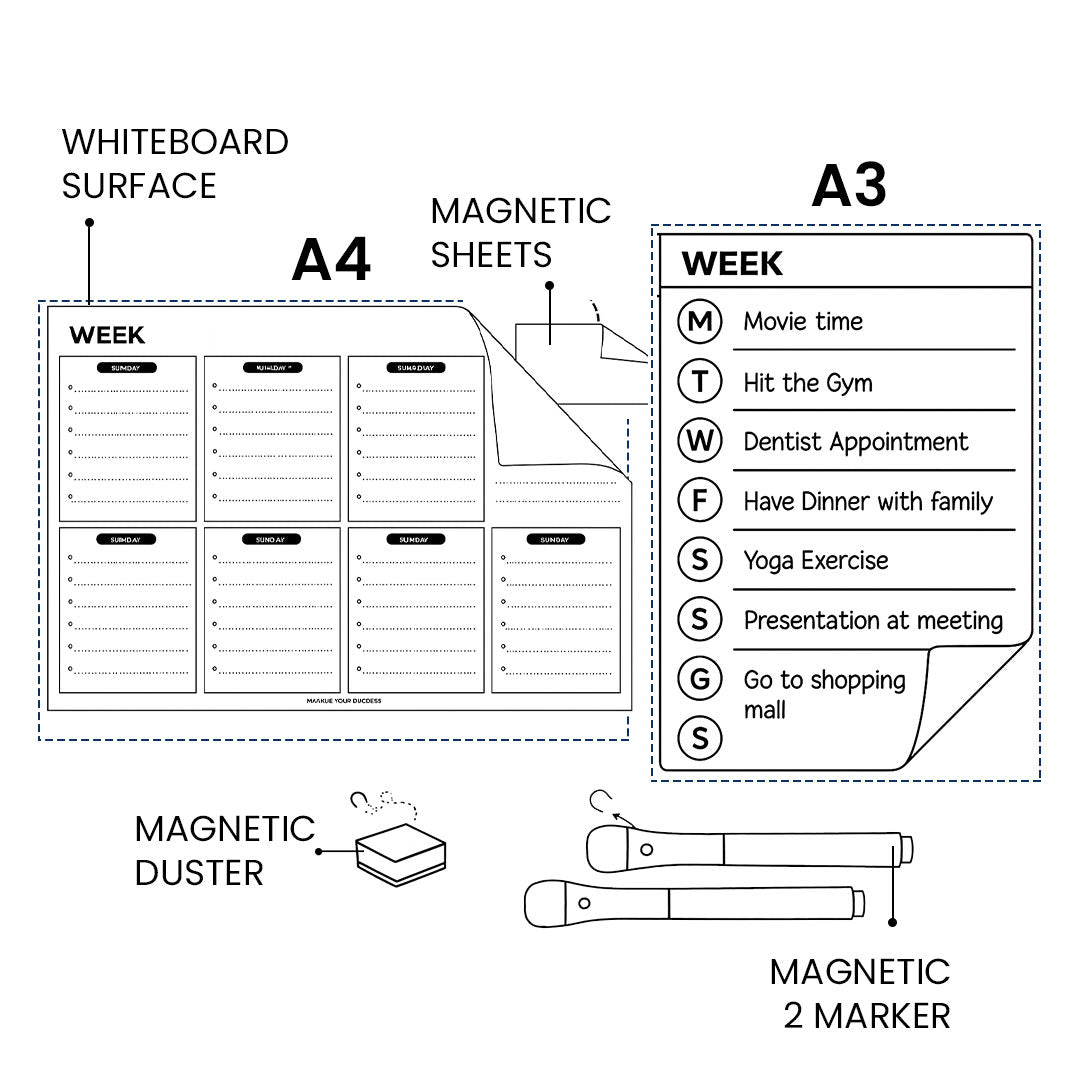 - Its magnetic backing makes it easy to stick on refrigerators, metal boards, or office cabinets, ensuring your schedule is always visible.