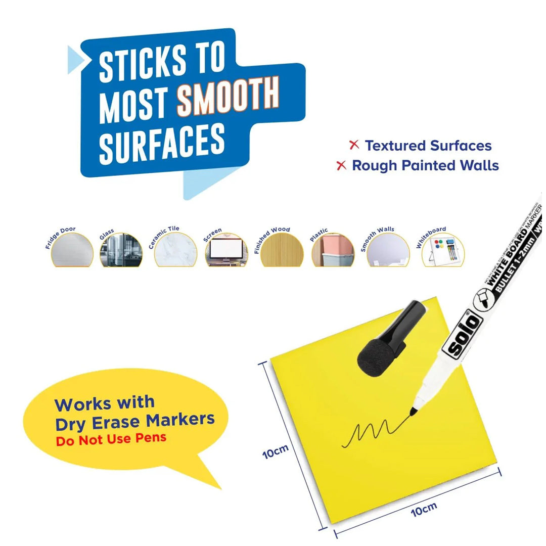 - Made with a smooth, dry-erase surface, these notes let you quickly jot down reminders, tasks, or ideas and wipe them clean when done.