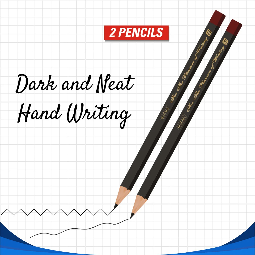 - 2 Pencils with dark, neat handwriting, offering a comfortable grip for extended writing sessions.