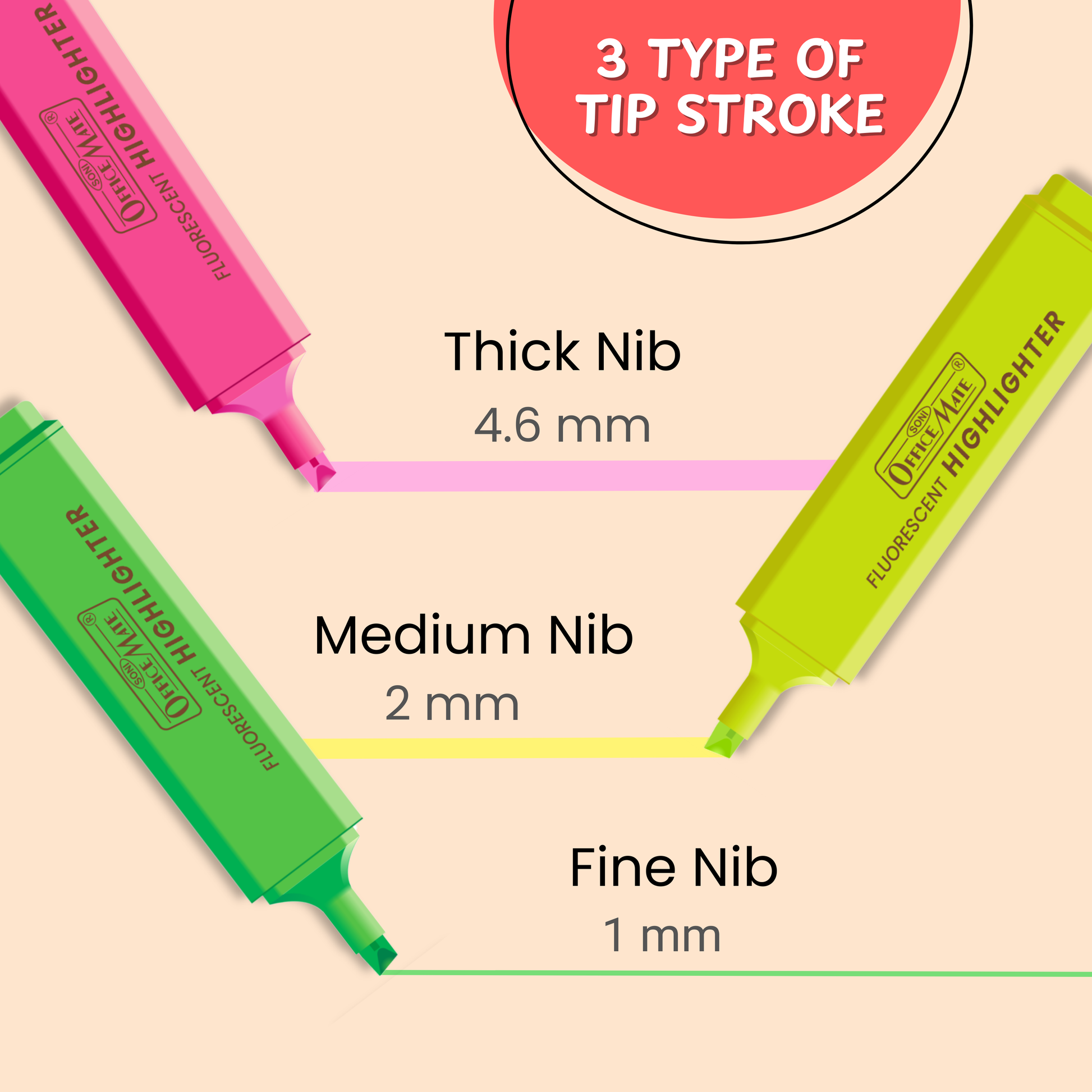 - Brighten up your notes and documents with the Soni Officemate Fluorescent Highlighters.