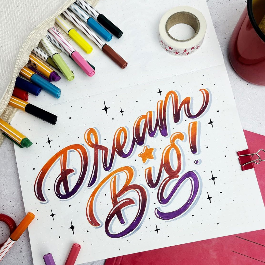 - The premium felt tip pen for strong lines and large areas in up to 47 bright colours.