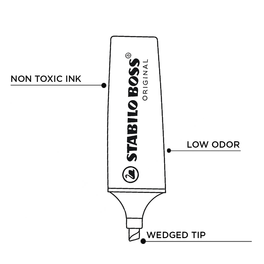 - Stabilo Highlighter is resistant to fading, non Toxic Ink, dries fast, low odor