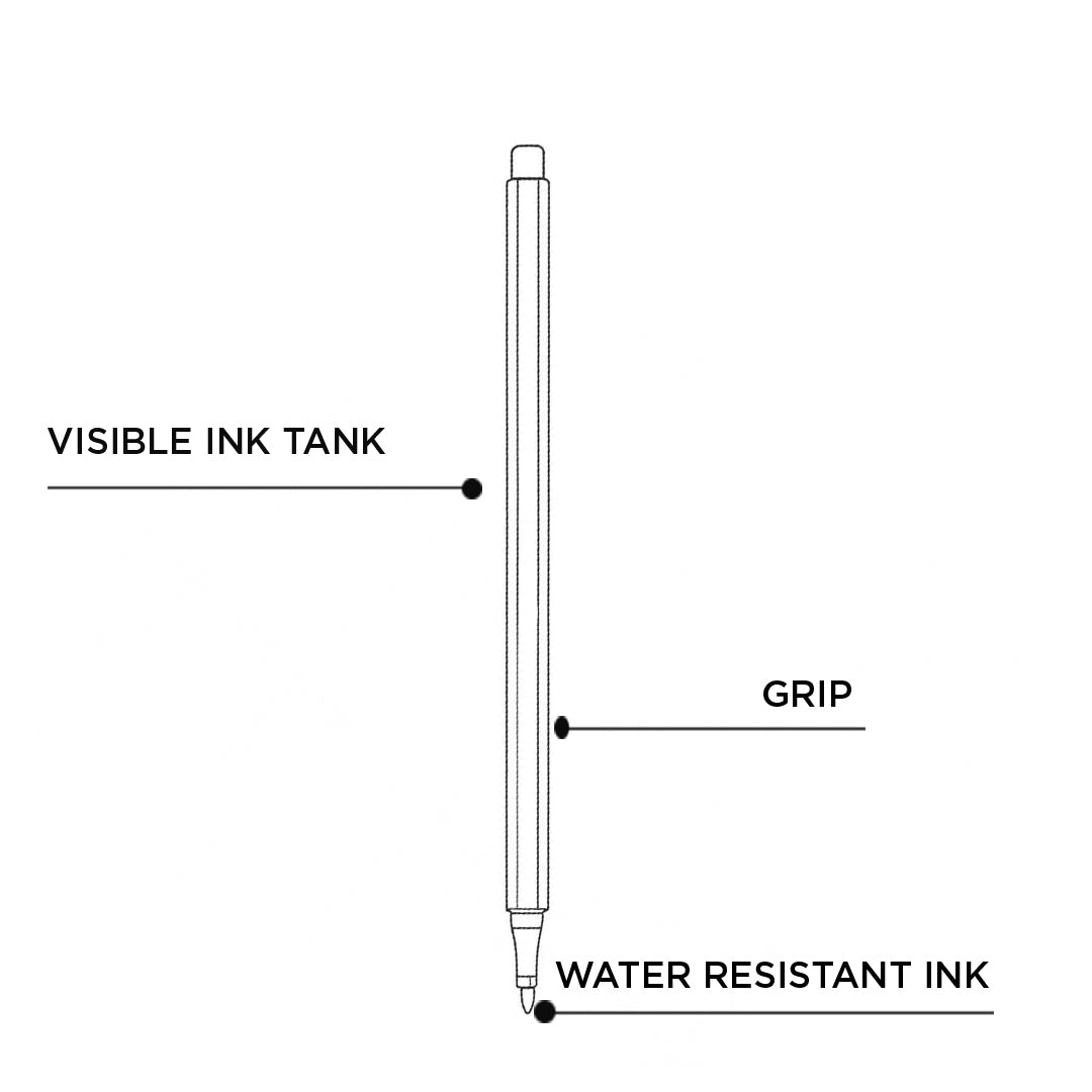 - The Design fineliners fit perfectly in the hand for effortless, fatigue free writing, drawing and coloring.