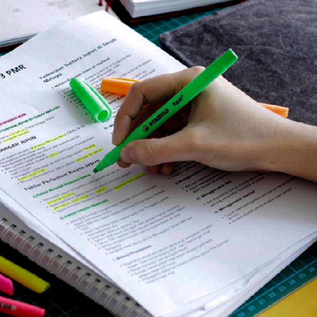 - STABILO flash highlighters can be used for up to four hour without a cap - without drying out. Pocket size highlighter with a practical clip. The Narrow tip is used for highlighting small print.