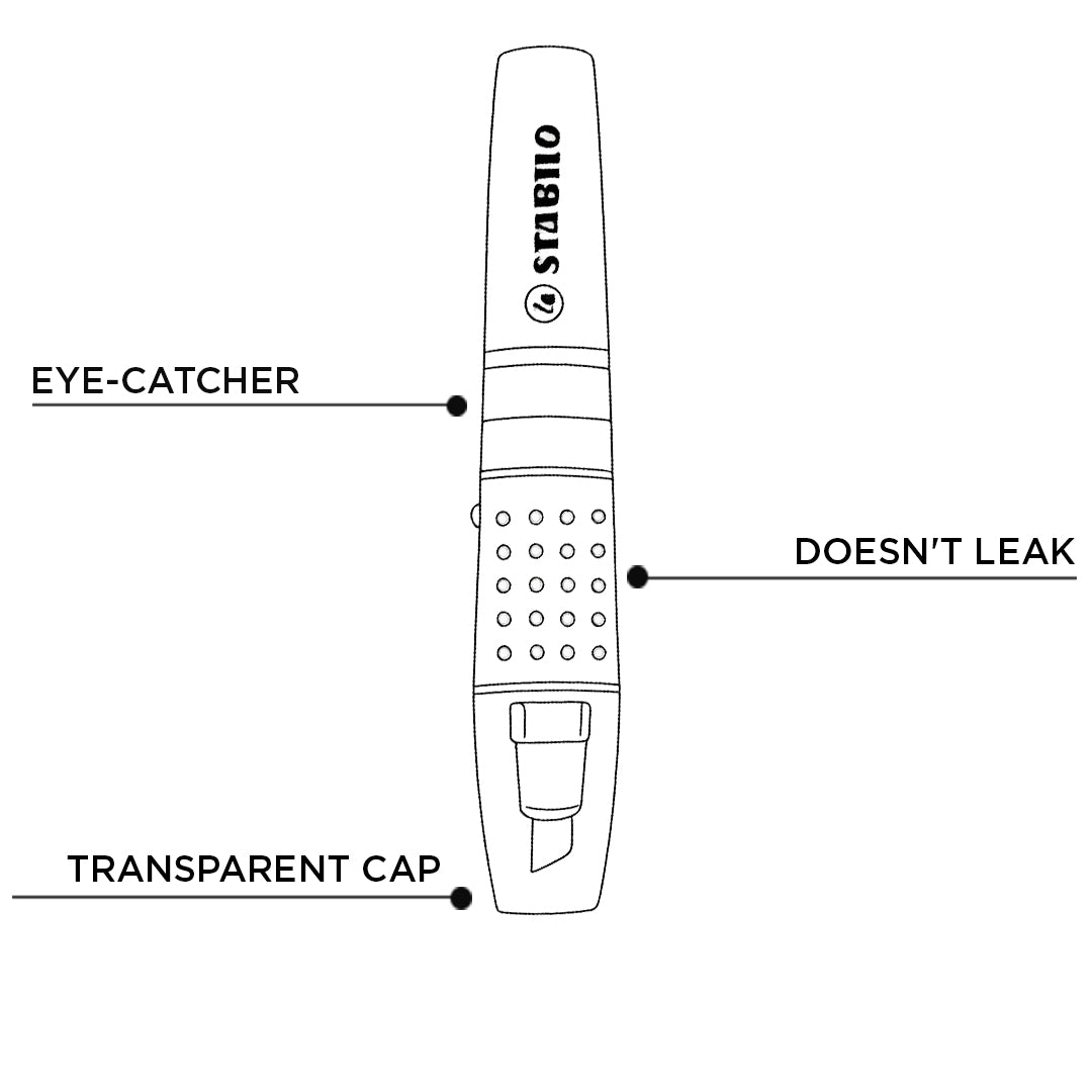 - The combination of transparent cap, non-slip grip zone and large level indicator make the long-lasting highlighter an eye-catcher on the desk.