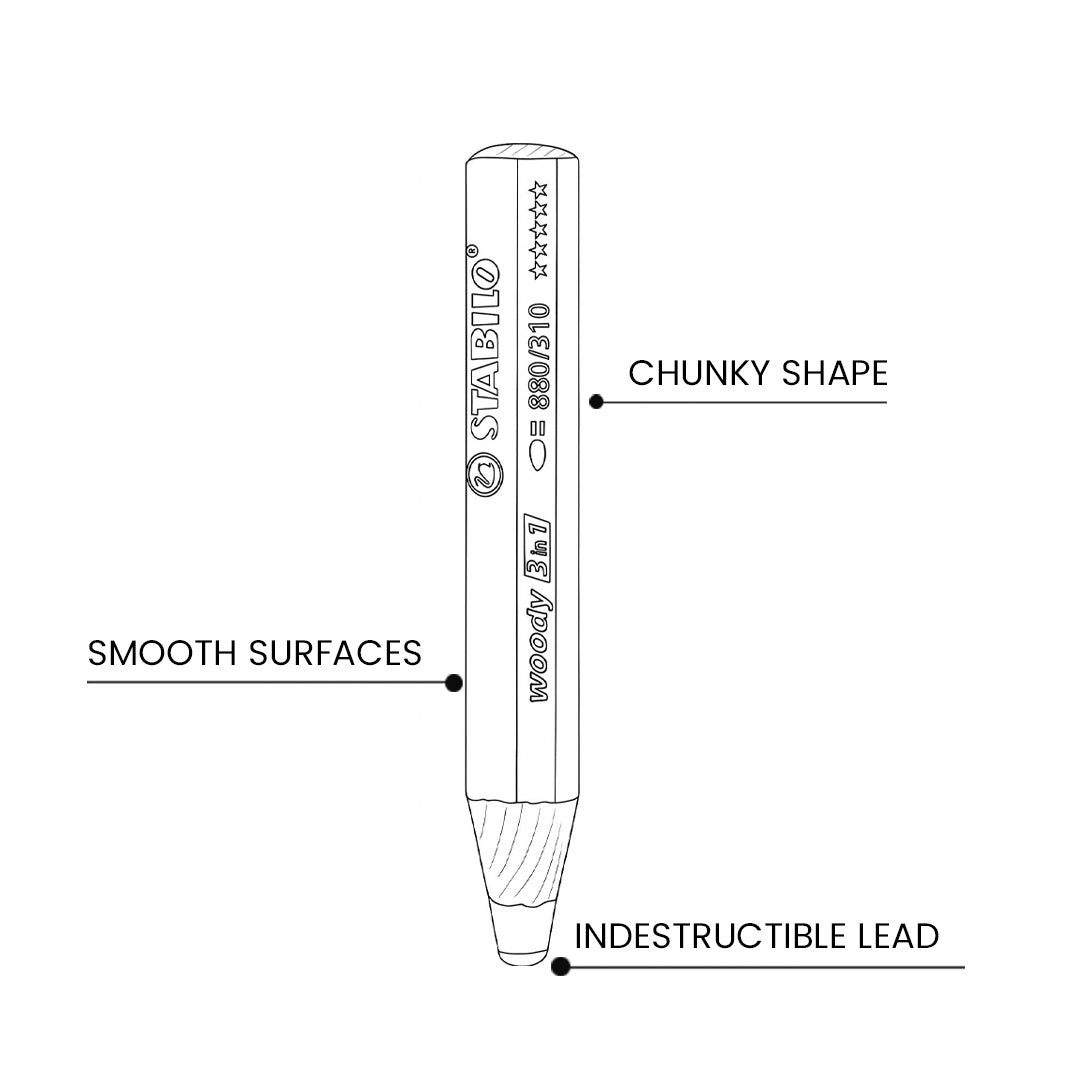 - Its chunky shape and size and indestructible lead make it perfect for kids' hands and promote a good grip.