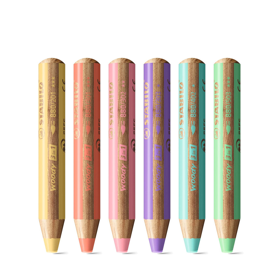 Stabilo Woody Pastel 3-in-1 Wallet of 6 Assorted Colours