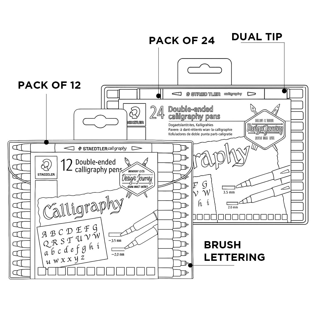 - The staedtler double-ended calligraphy pen features two nib sizes 3.5 mm and 2.0 mm allowing you to create bold headings and fine decorative strokes with one versatile tool.