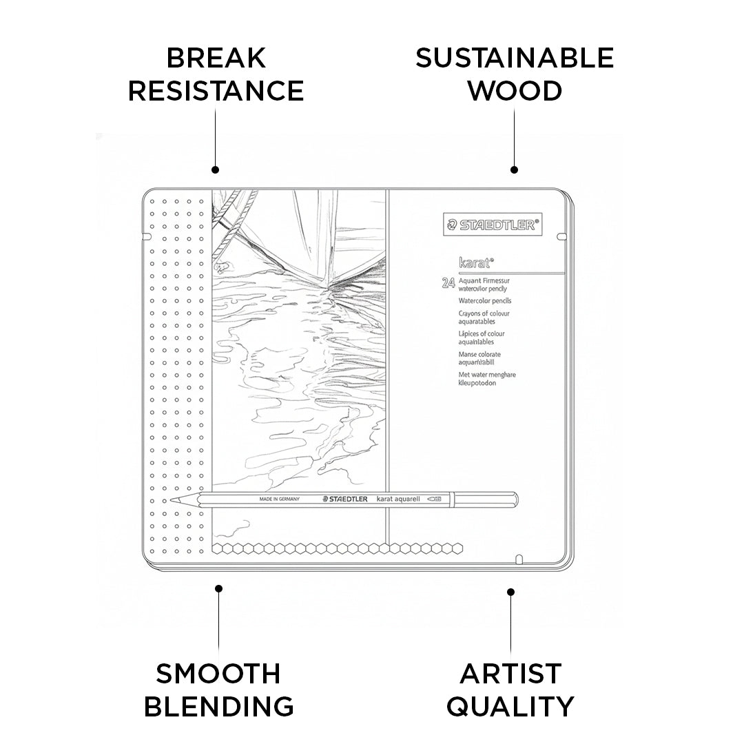 - Staedtler karat aquarell colour pencils metal box set offers premium-quality watercolour pencils packed in a sturdy, elegant metal box for safe storage and easy organization.