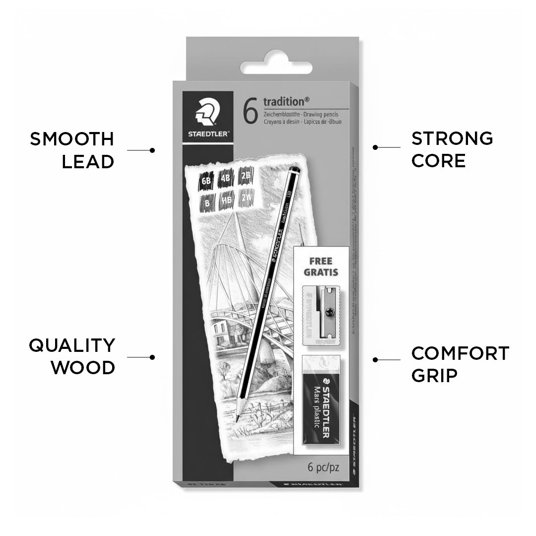 - Easy to sharpen and comfortable to hold, staedtler tradition pencils are ideal for students, artists, architects, and professionals who require reliable performance and superior control across different lead grades.