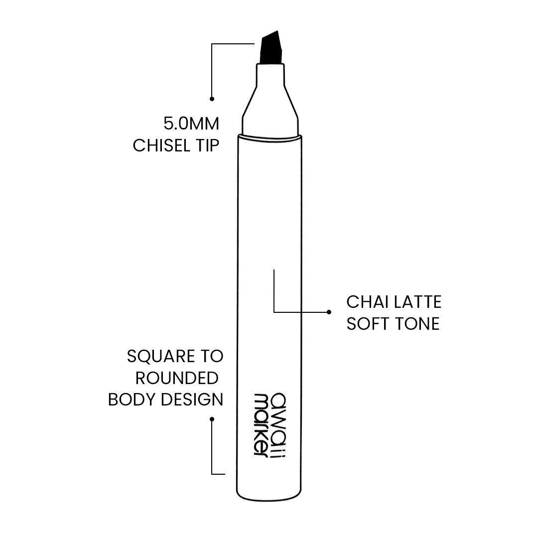 - The marker's wide body tapers from a square towards a rounded cap, preventing it from rolling while keeping it comfortable to hold.