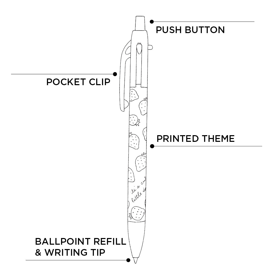 - Decorated with a charming strawberry-themed design, it’s perfect for students, professionals, or stationery lovers who enjoy both creativity and convenience in their writing tools.