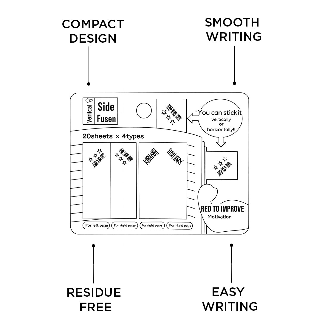 - The dual-sided design lets you stick notes on either the left or right side of your documents or notebooks, making them perfect for annotations, bookmarks, or study aids.