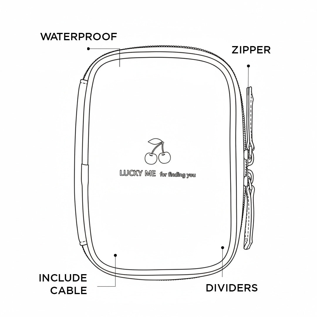 - Designed with multiple compartments, it neatly stores cables, chargers, earphones, and small accessories.