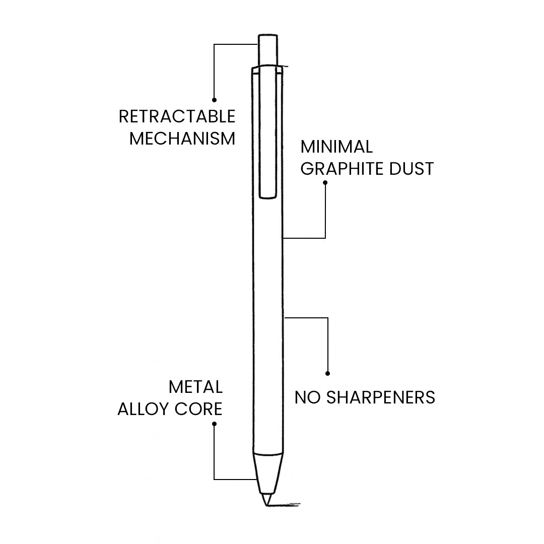 - Featuring a metallic lead core that writes smoothly without sharpening, this pencil offers a clean, erasable graphite-like experience with minimal smudging.