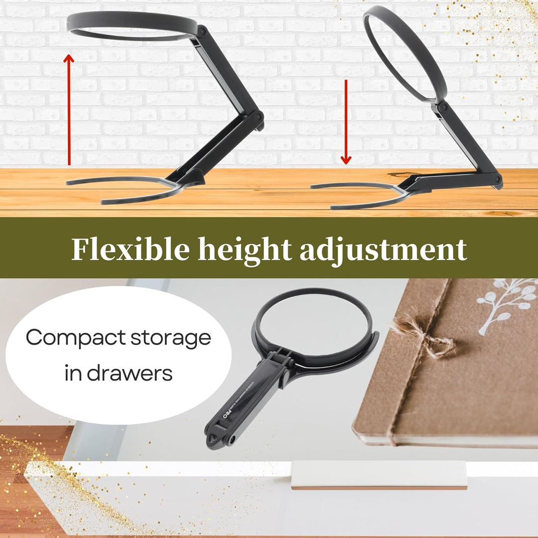 - Compact When Folded: The stand can be folded, making the magnifying glass nearly the same size as a regular one, ensuring it fits easily in drawers without taking up much space.