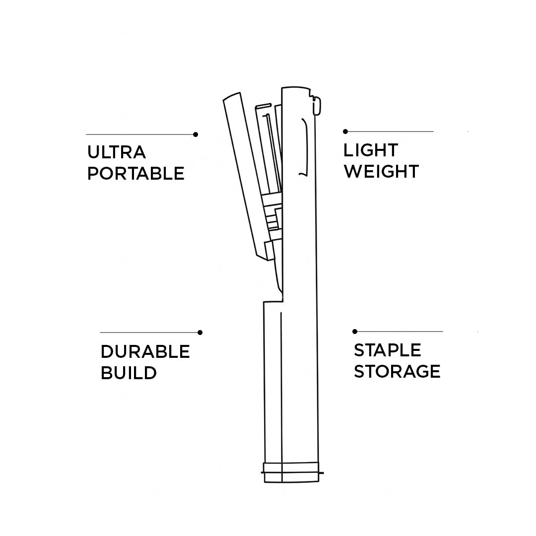 - Its unique “sticky” adhesive mechanism binds papers together neatly without the need for traditional metal staples, making it a safe and eco-friendly choice.