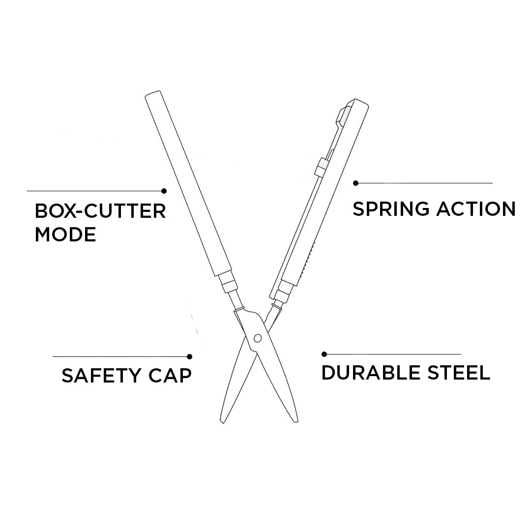 - Featuring a unique dual-function mechanism, they can be used both as standard scissors and as a box opener—making them perfect for everyday tasks at home, school, or the office.