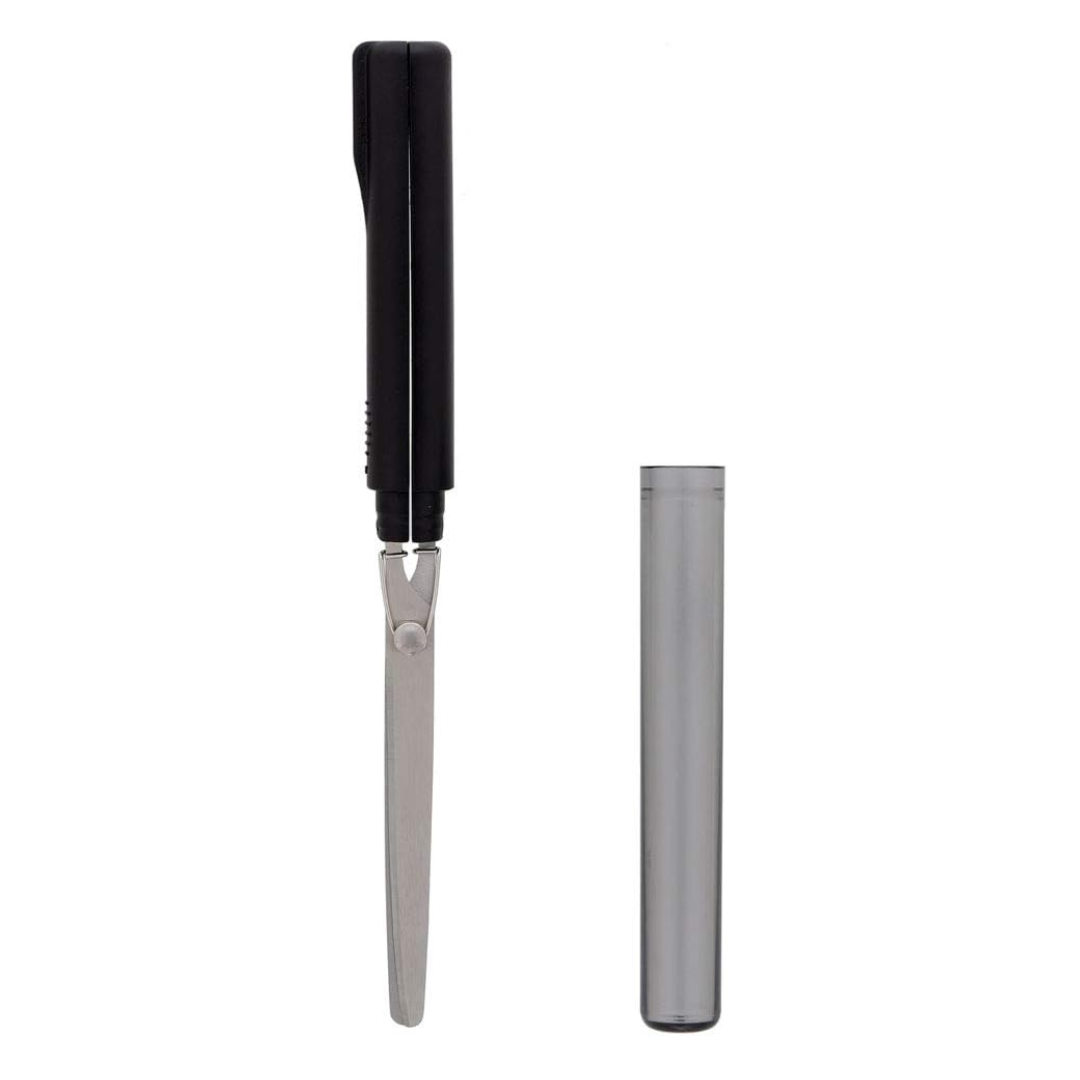 - These slim, cleverly capped scissors are great for cutting papers and photos yet still small enough to tuck into a purse or pen case so that you'll always have a pair of scissors on hand. The blades are curved near the top to make cutting easier. They also feature a safety lock to keep from opening up in your bag if the cap comes off accidentally.
