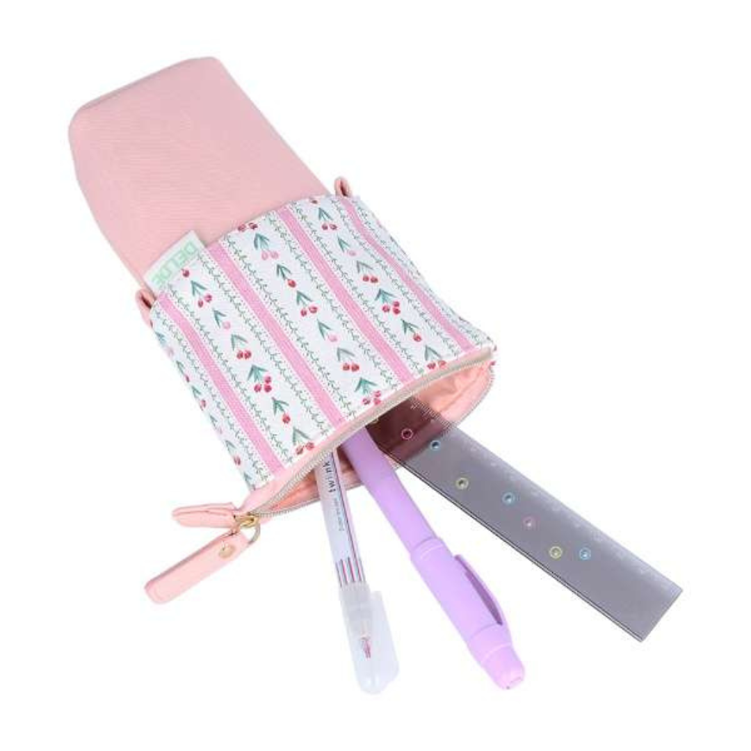 - Designed with a colorful and cheerful spring-themed pattern, this slim pouch adds a touch of fun to your daily writing essentials.