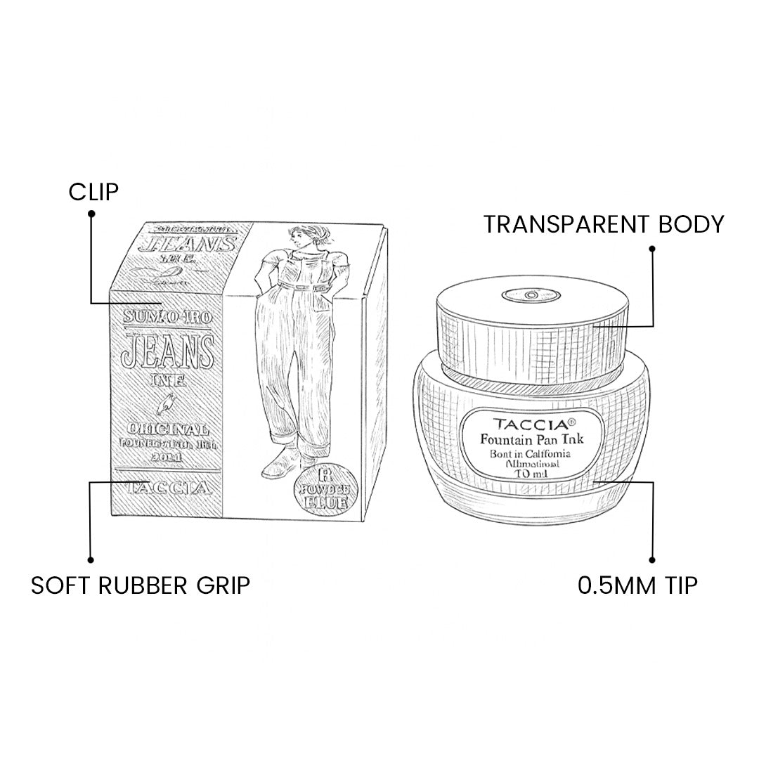 - Safe for fountain pens, dip pens, and brushes, Taccia Jeans Ink is perfect for daily writing, creative journaling, or artistic expression, adding a touch of casual elegance to every page.