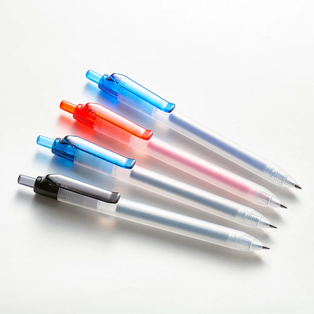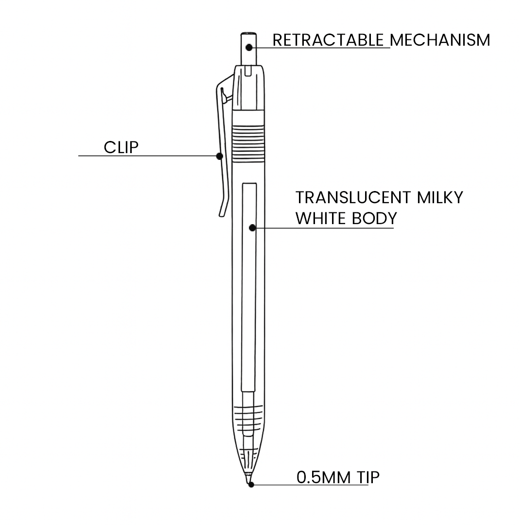 - The translucent milky white pen body is matched with components of the same color as the ink.