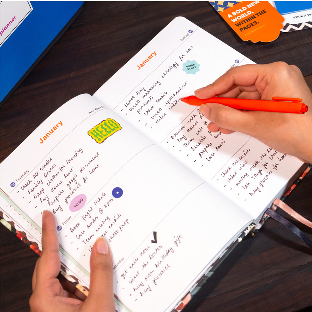 - The hardbound A5 planner features a premium matte cover with gold foiling, elastic band closure, and 256 durable FSC & PEFC certified 120 GSM pages. Comes with 2 coloured bookmark ribbons and dated pages for effortless navigation.