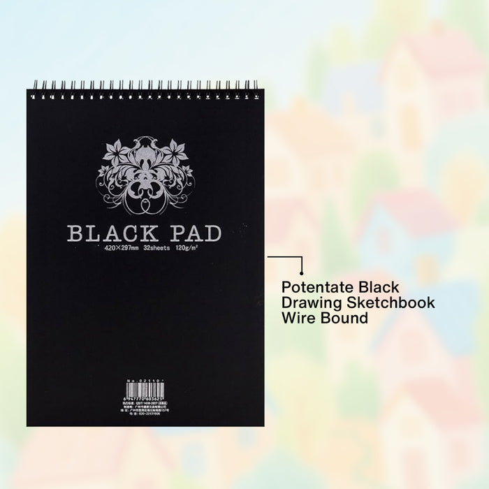 - Potentate Black Drawing Sketchbook Wire Bound (42 x 29.7cm)